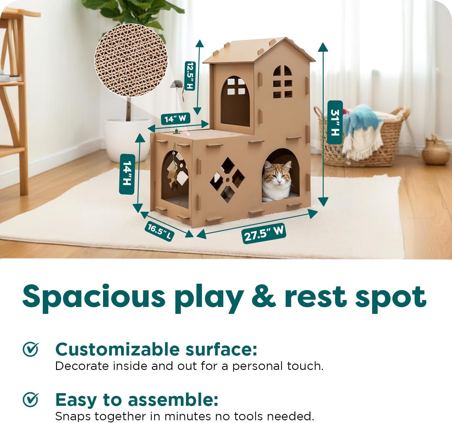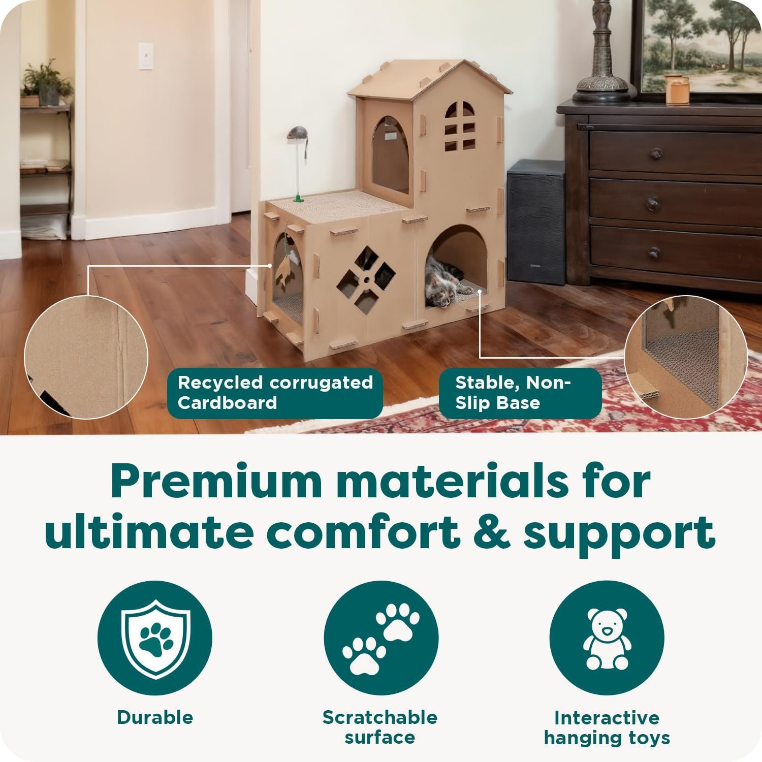 • Double-Walled Corrugated Panels: Built with strong, durable recycled materials for excellent stability. Ideal for cat condos in multi-cat homes.