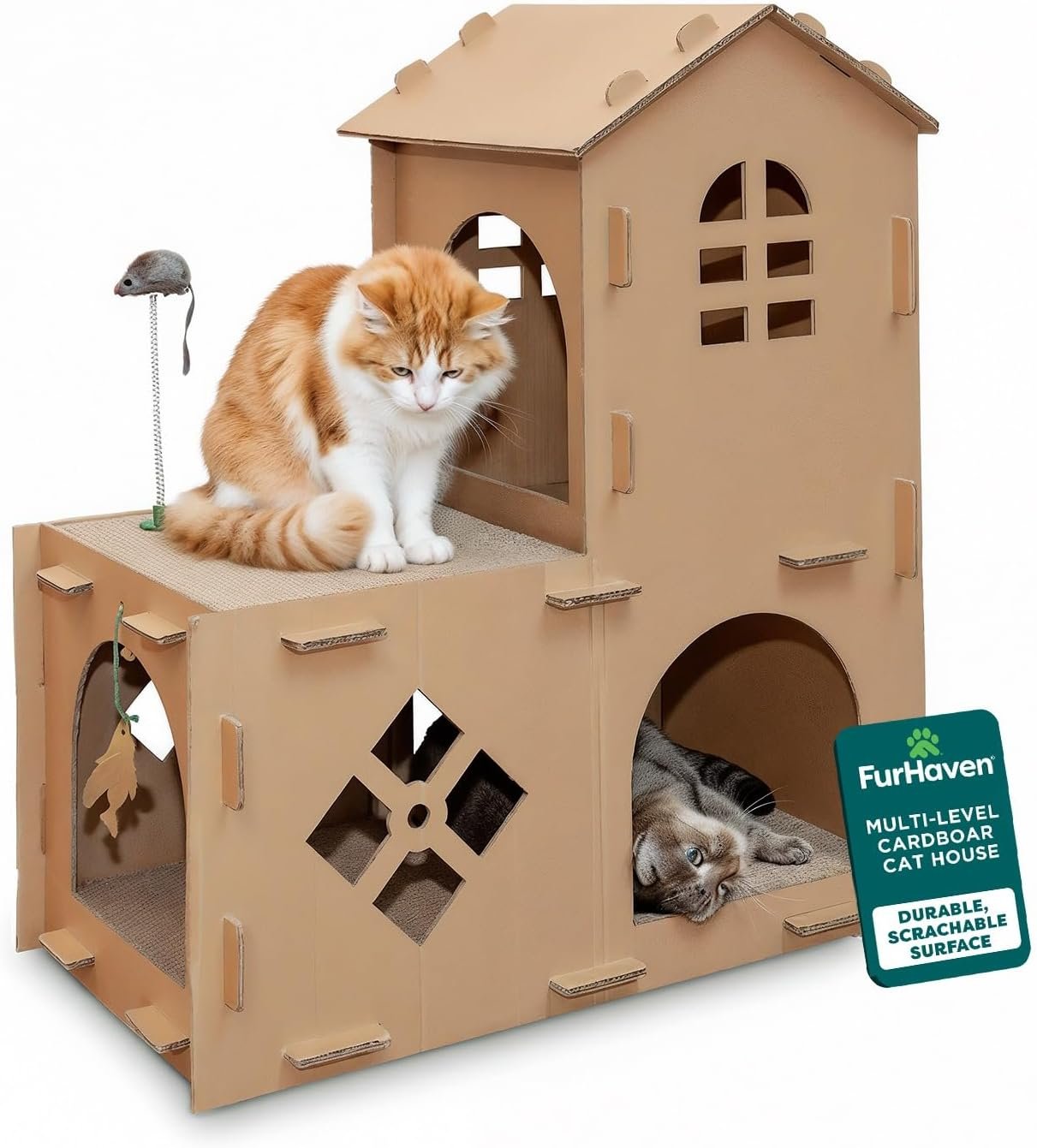 The price is competitive, especially given its robust design and playful extras like the catnip toy. According to Tractor Supply, FurHaven backs its durability claims with numerous satisfied reviews, making it a leader among cardboard scratching houses.